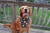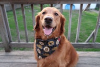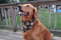 This is Mookie a very sweet 5 year old golden retriever boy! He’s loves to match his family in his Bruins gear ♥️